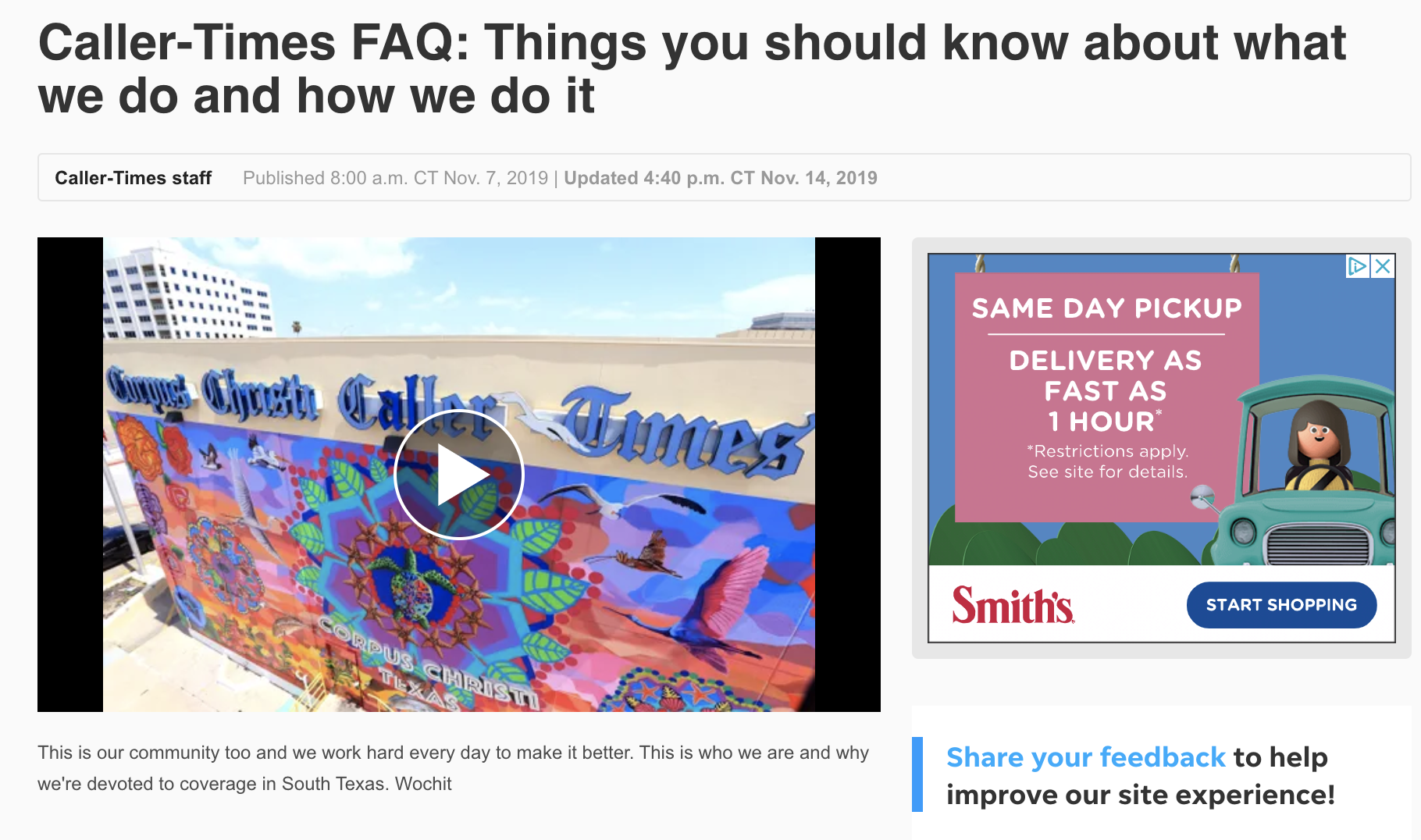 The Corpus Christi (Texas) Caller-Times wrote an article explaining who they are, why they do what they do, and what the newsroom’s decision-making process is. The article included information like the newsroom’s mission, how the newsroom decides what to cover, how they use content from wire services, its process for handling corrections, as well as how the public can submit news tips. By putting all the information into one place they’ll be able to easily share the link when questions come up in the future.