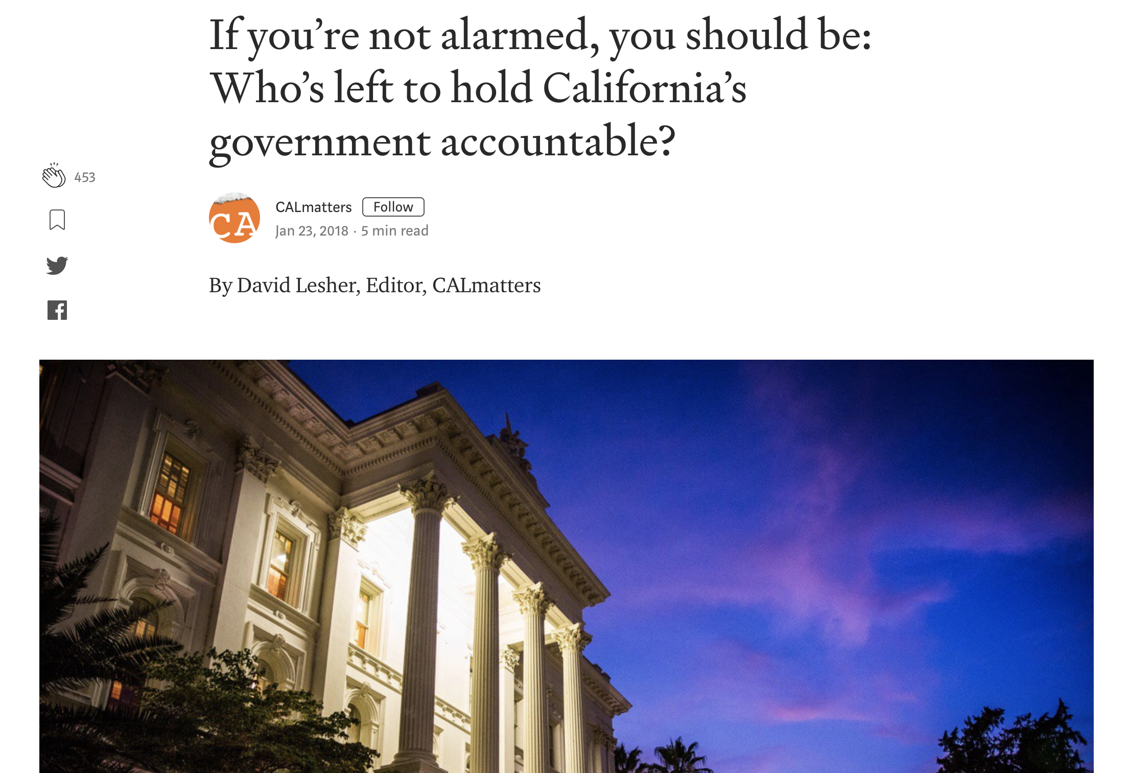 CALmatters talked about the importance of news coverage in California after several changes were made at news publications around the state. They used Medium to talk about why news matters.