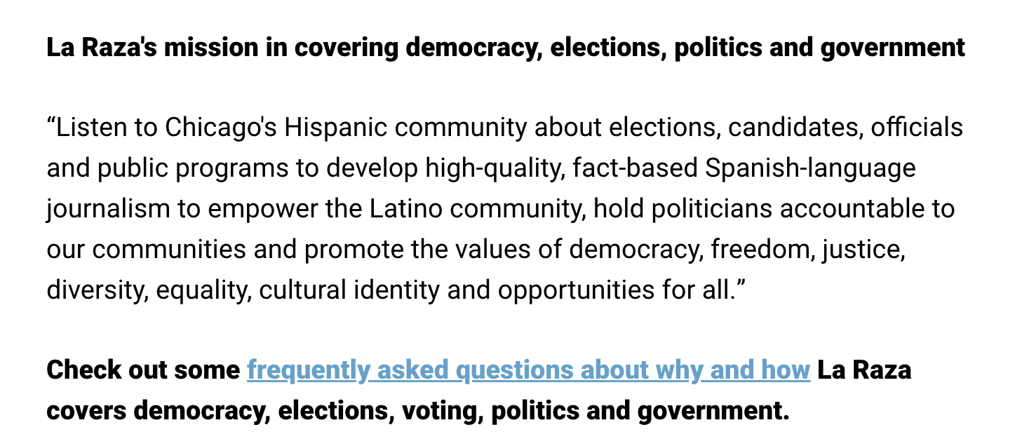 1. La Raza Chicago: Linking to FAQ in daily coverage