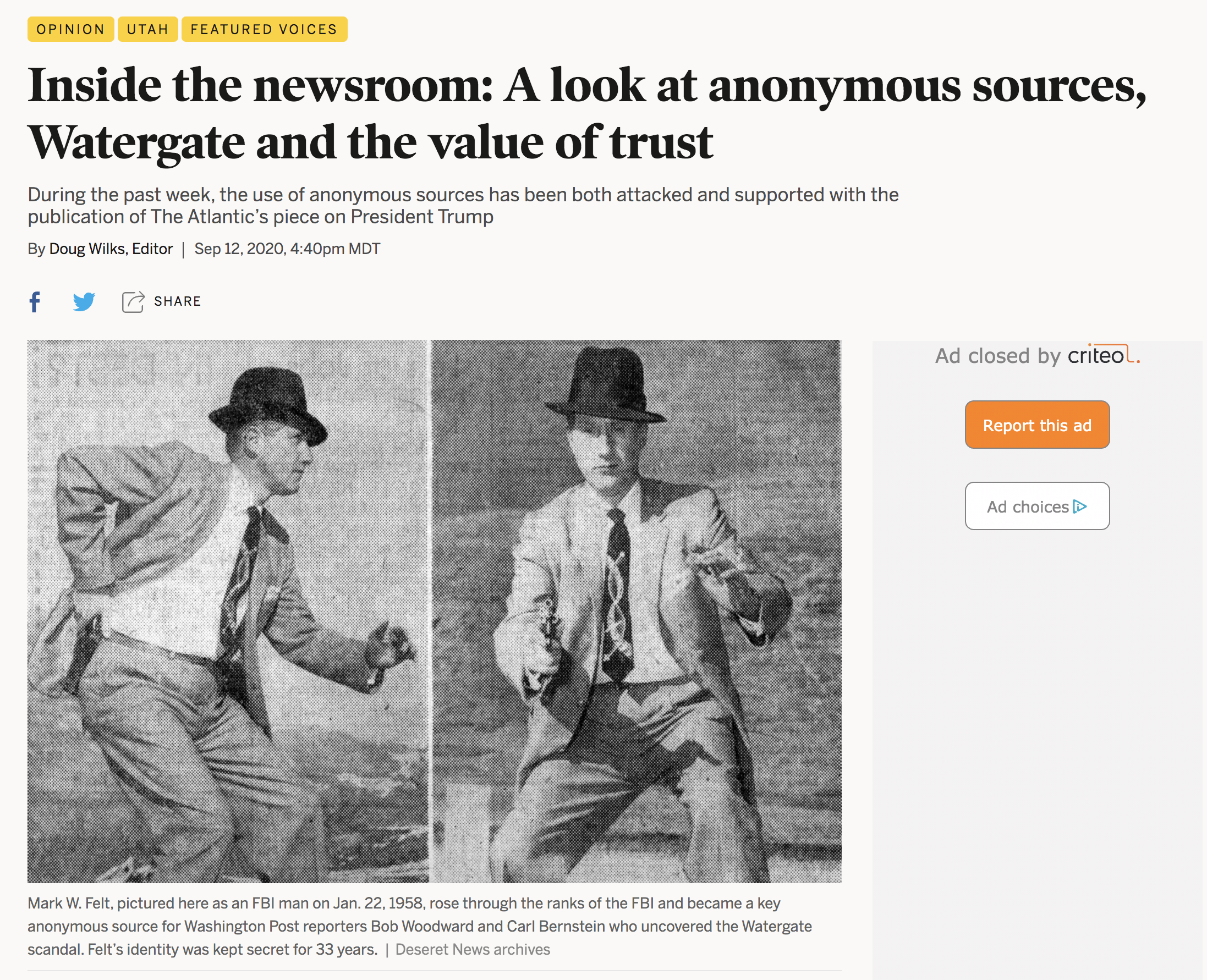 After a controversial story about President Trump that cited an anonymous source published in The Atlantic, editor and chief of The Deseret Dave Wilks used the opportunity to write about the history of anonymous sources and explain The Deseret’s policy on the matter. Wilks wrote that at The Deseret, “a reporter must reveal his or her sources to an editor before we consider publication. I am involved as executive editor on key stories and revelations attributed to anonymous sources. Often our response to the reporter is, keep reporting. Find on-the-record sources.” This work was done independently from Trusting News but embodies the work we do.