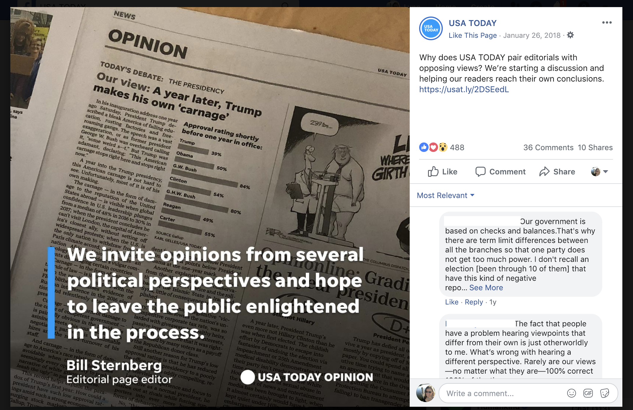 USA TODAY discusses how they invite people with different perspectives to be part of their editorial coverage in a post on Facebook.
