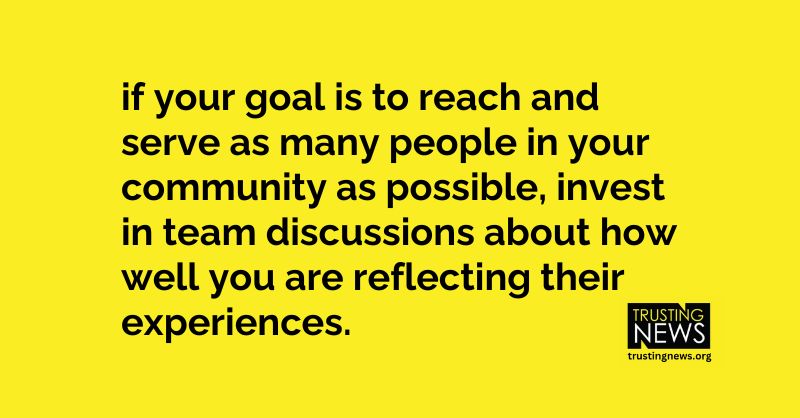 - You’ll have the opportunity to connect with Trusting News staff and with other participating newsrooms for coaching and support if you choose.