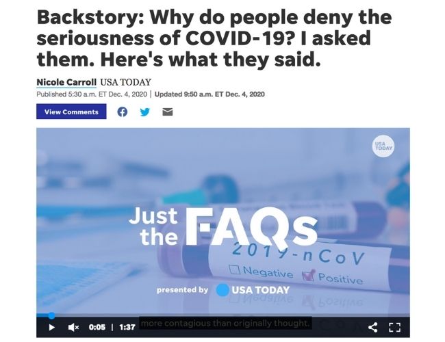 The editor of USA TODAY, Nicole Carroll, wrote a column to talk about the organization’s goals of factual and fair reporting during the COVID-19 pandemic.
