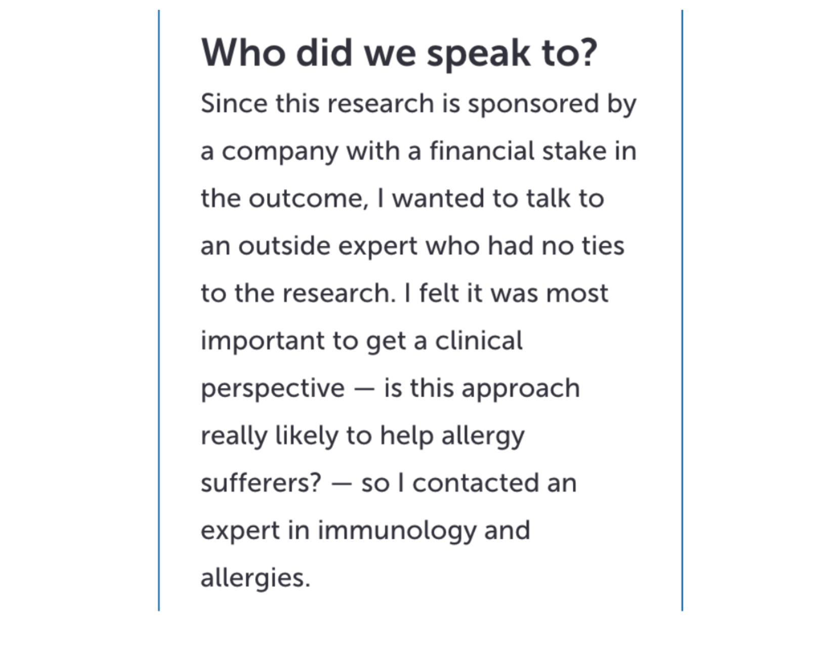 Science News reporter Erika Engelhaupt included a transparency box alongside her story explaining how she sourced the story, detailing why she talked to the experts she did.