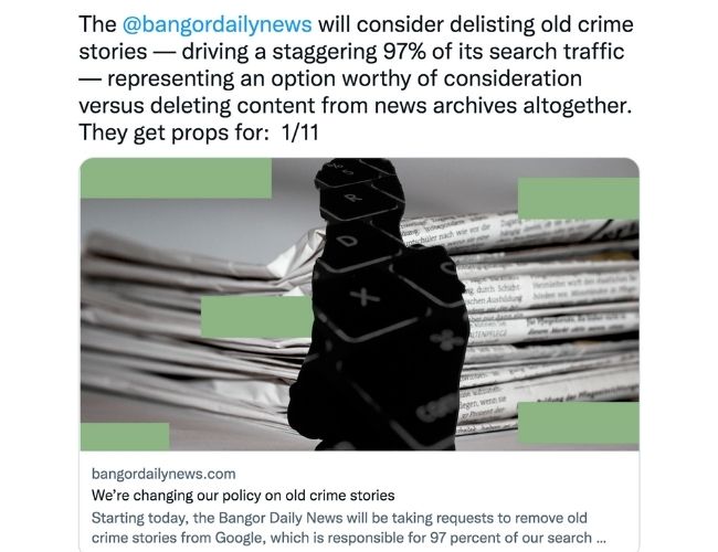 When the Bangor Daily News decided to change their policy on removing old crime stories from their website, they published a story explaining the change and why they’re doing it.
