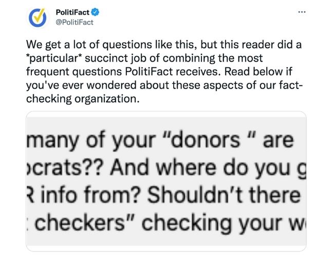 Politifact used a real user comment as a jumping off point to debunk misconceptions about their newsroom’s ethics, funding and process.