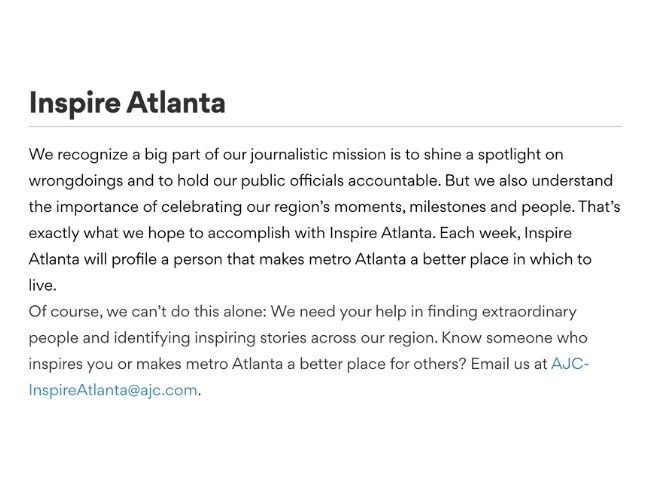 The Atlanta Journal-Constitution highlighted how they aspired to write positive stories by asking for the public’s help in finding uplifting stories about the community.