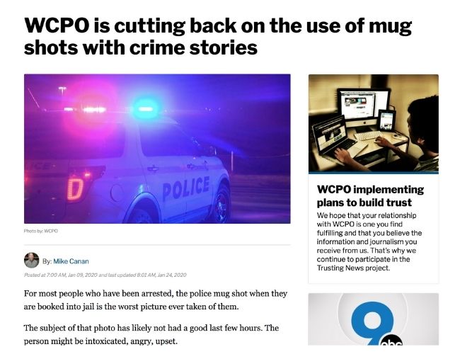 When WCPO cut back on the use of crime mugshots on its website, they published a column explaining the change and the station’s new protocols around it.