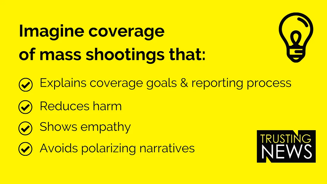 - If you cover any conspiracy theories related to the shooting, here are tips for taking care with that. (Remember, there are folks who will claim this event was a “false flag,” and that might warrant coverage.)