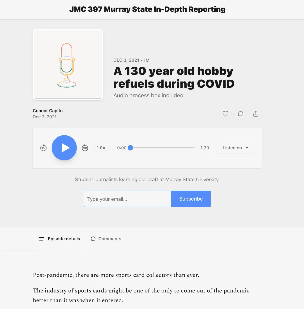 One story focused on the increased interest in sports card collecting. In the audio explainer, the student reporter highlights: