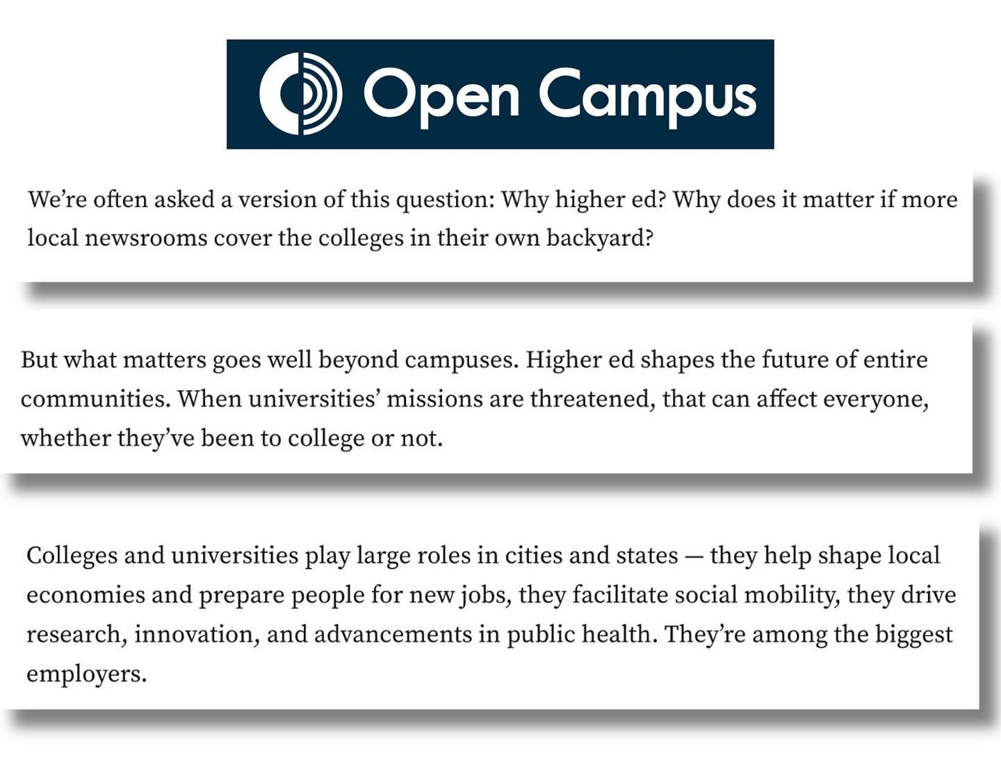 From a practical sense, Open Campus and its network of journalists found themselves referring to these same talking points often, so it’s helpful to have this mission explained in a public-facing column they can easily link to and share.
