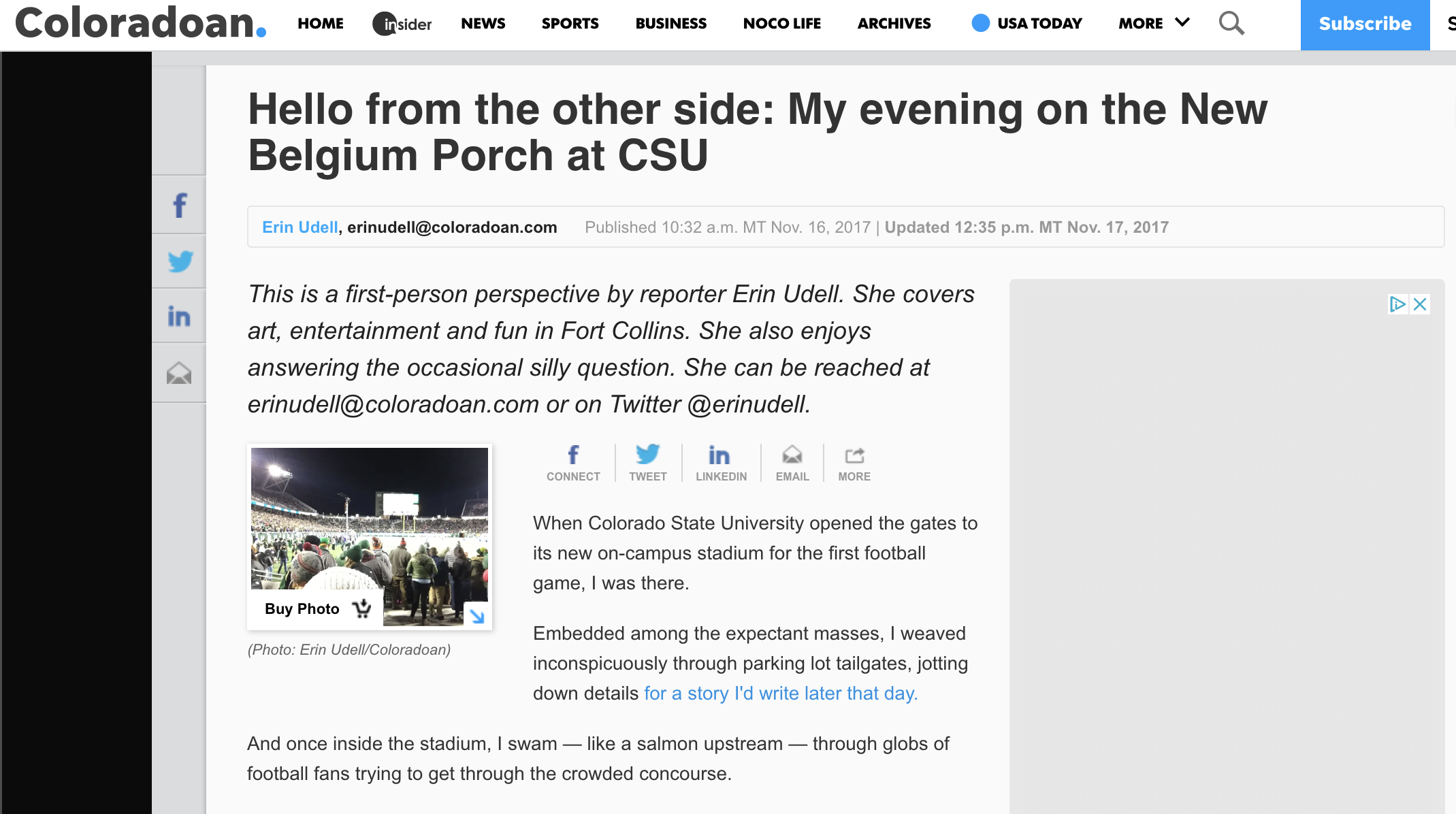 In response to criticism for spending time on light stories — sometimes perceived as frivolous — Coloradoan reporter Erin Udell included an explanation that said: “This is a first-person perspective by reporter Erin Udell. She covers art, entertainment and fun in Fort Collins. She also enjoys answering the occasional silly question. She can be reached at erinudell@coloradoan.com or on Twitter @erinudell.” Doing so explained why this story was being done and cut down on pushback.
