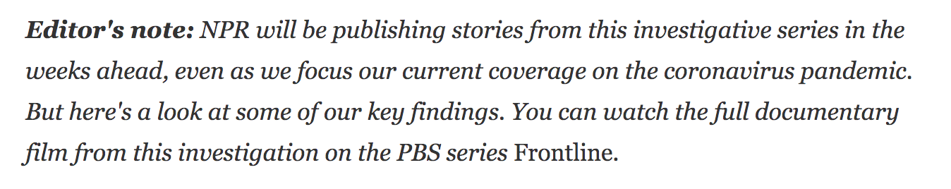 With COVID-19 consuming daily life, it could seem strange to see a non-pandemic related investigation published by a news organization. NPR addressed this situation directly when publishing an investigation into recycling. They adding an editor’s note at the top of the story that read, “NPR will be publishing stories from this investigative series in the weeks ahead, even as we focus our current coverage on the coronavirus pandemic. But here’s a look at some of our key findings. You can watch the full documentary film from this investigation on the PBS series Frontline.” This work was done independently from Trusting News but embodies the work we do.