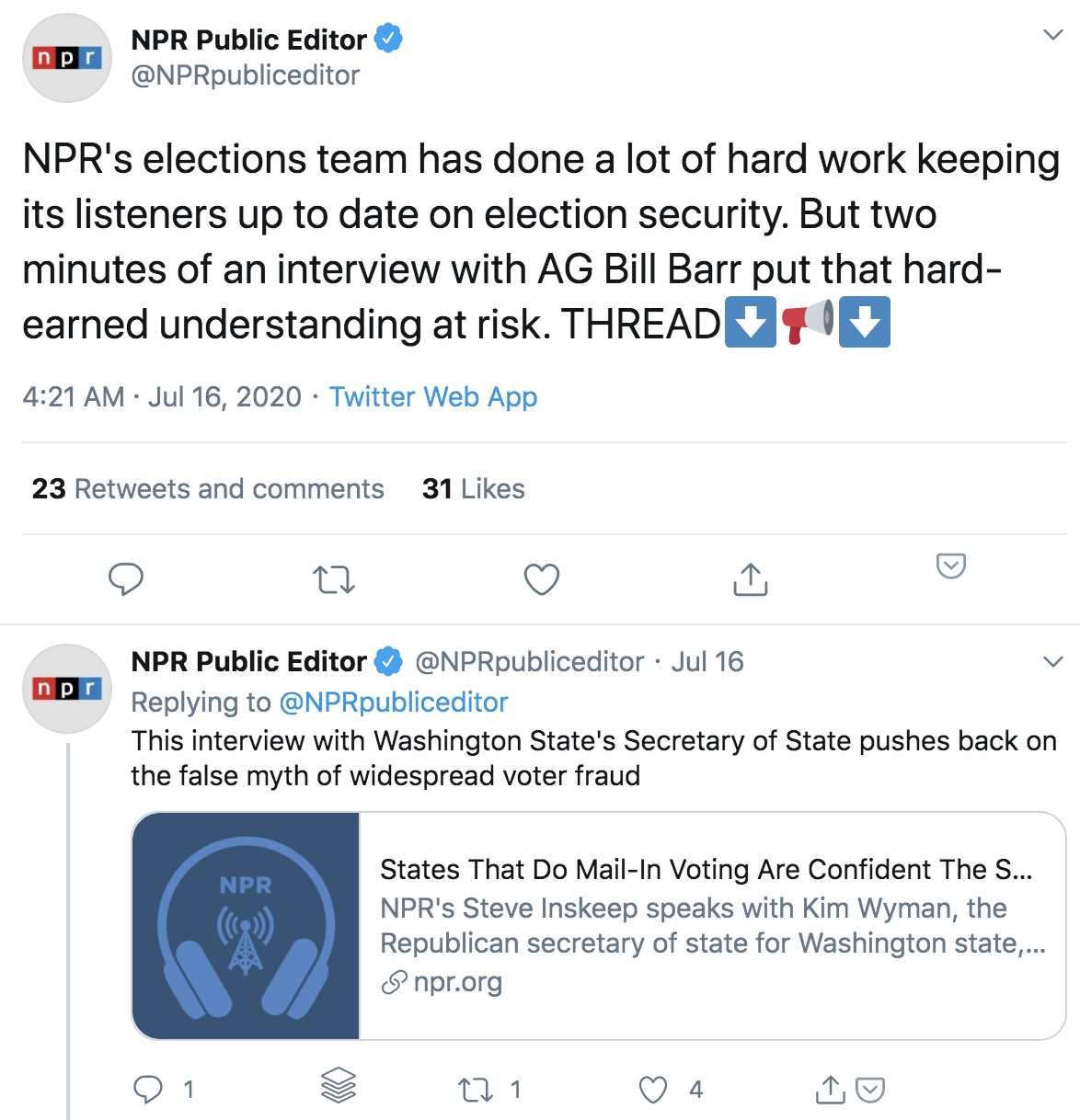 When an NPR interview didn’t go far enough to hold a public official accountable who was spreading false information about elections, NPR was transparent and admitted its shortcomings, running a column from standards editor Kelly McBridge about how the station could have done a better job providing context for readers. “Examining this particular segment of this particular interview, gives us a chance to hone our practices. Audience trust presumes we will not air blatant falsehoods. It’s an ongoing exercise to identify and sharpen the skills and tools necessary to place false information into a truthful context,” McBride wrote. This work was done independently from Trusting News but embodies the work we do.