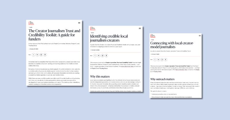 Credible creator journalists are an important part of local information ecosystems, filling coverage gaps and serving audiences who often don’t tune into traditional news coverage.