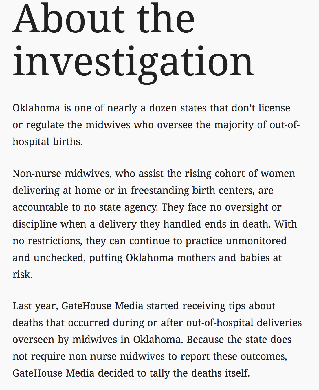 When The Oklahoman published an investigation into the lack of regulations of midwives in the state, the paper included a video Q&A with the reporter and a written column that expanded on the paper’s reporting process. The column addressed questions such as why the paper looked into this topic in the first place, how the reporters obtained public records, and why they did not name of some families involved in the lawsuit, even though it was public information. “As investigative journalists, our job is to tell in-depth stories that make communities safer, healthier and more knowledgeable. When we invest many months in stories like this, it’s because we uncover information that we think the public needs to know and can’t find anywhere else,” the column read. This work was done independently from Trusting News but embodies the work we do.