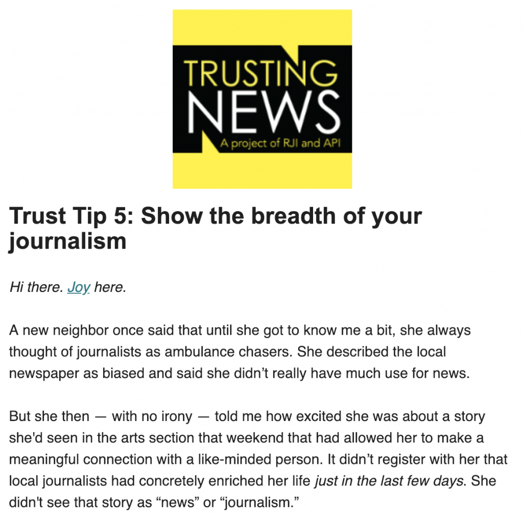 A new neighbor once said that until she got to know me a bit, she always thought of journalists as ambulance chasers. But she then — with no irony — told me how excited she was about a story she’d seen in the arts section that weekend that had allowed her to make a meaningful connection with a like-minded person. It didn’t register with her that local journalists had concretely enriched her life just in the last few days. More from this edition can be found here and to receive the tips in your inbox each week click here.