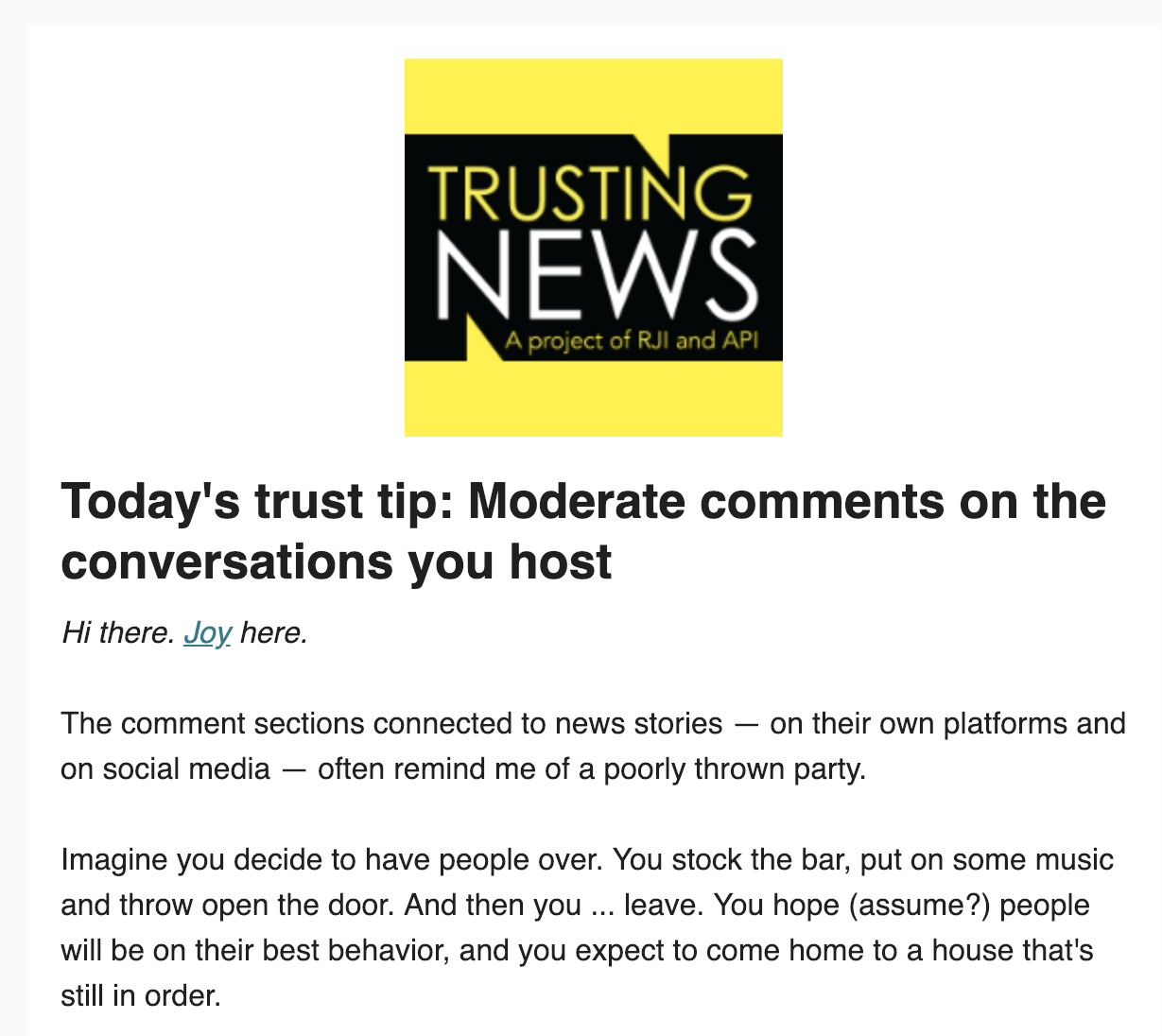The comment sections connected to news stories — on their own platforms and on social media — often remind me of a poorly thrown party. Imagine you decide to have people over. You stock the bar, put on some music and throw open the door. And then you … leave. You hope (assume?) people will be on their best behavior, and you expect to come home to a house that’s still in order. More from this edition can be found here and to receive the tips in your inbox each week click here.