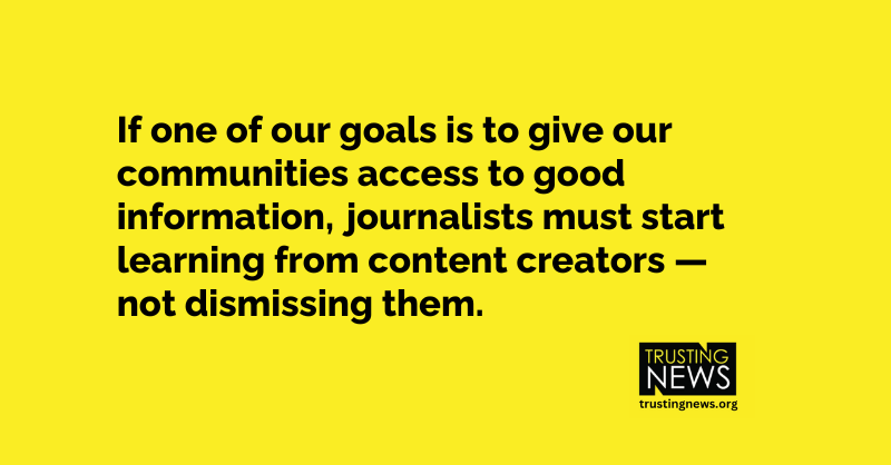 But if one of journalism’s goals is to give our communities access to good, helpful information — wherever people are turning for it — it’s important that journalists start learning from content creators rather than dismissing them.