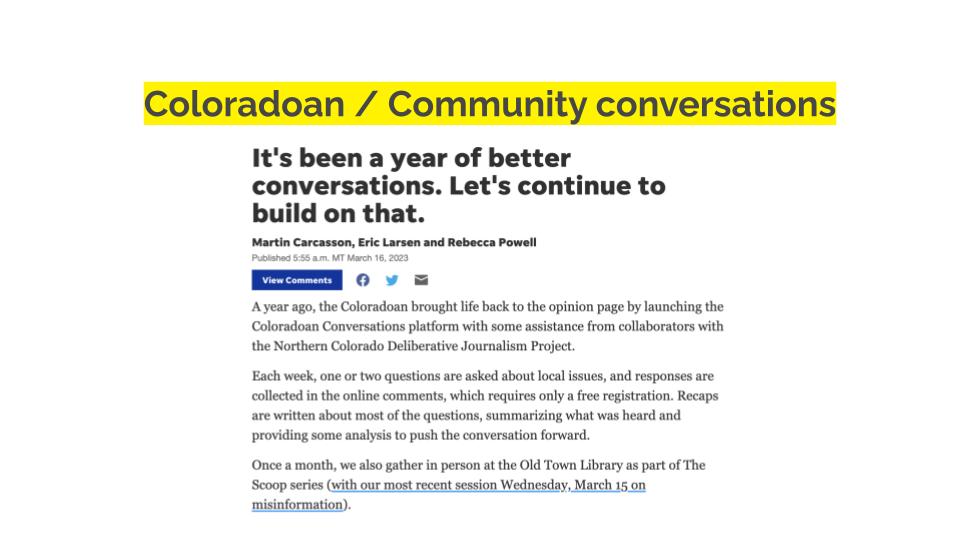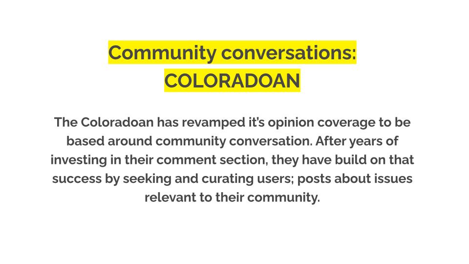 Some commenters will be sharing their experiences or interests or curiosities. That’s a fantastic way that conversation can be an extension of the journalism. Things like “what else do you want to know about this” or “have you seen this in your neighborhood” can lead to story ideas and sources, and they can turn the comments into a productive form of journalism.