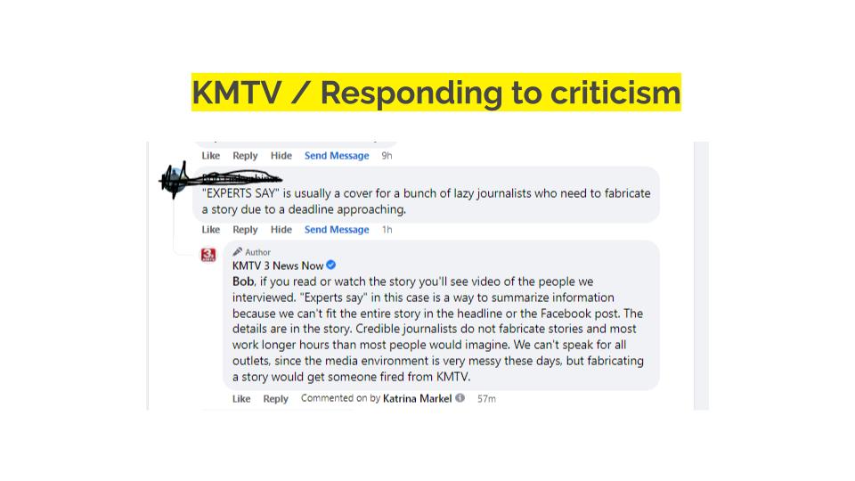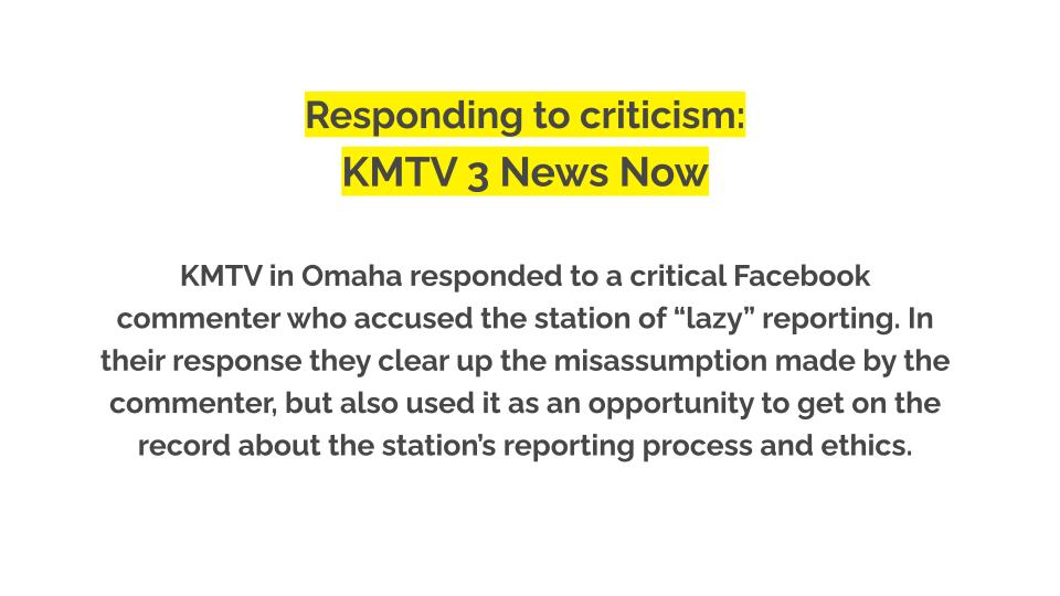 Your goal isn’t necessarily to convince this specific commenter to find your coverage fair. It’s to set the record straight in a public conversation, to everyone who’s listening. Here’s another example: