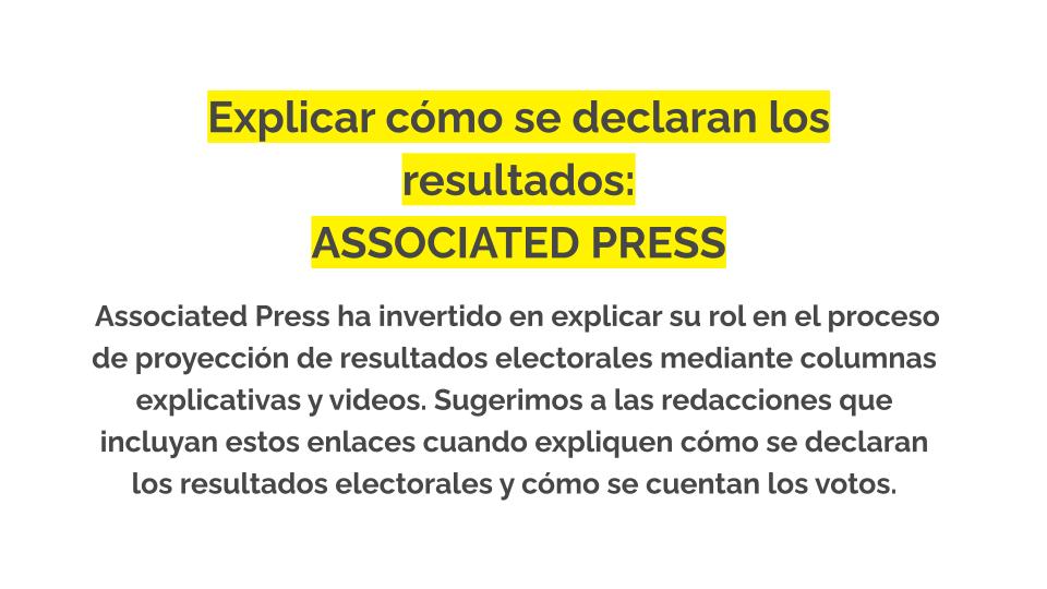 The Associated Press ha dedicado esfuerzos a explicar su (inmenso) papel en el proceso. Aquí está su centro electoral de 2024 donde puedes consultar docenas de explicaciones sobre el funcionamiento del proceso electoral.