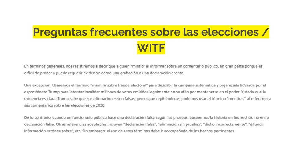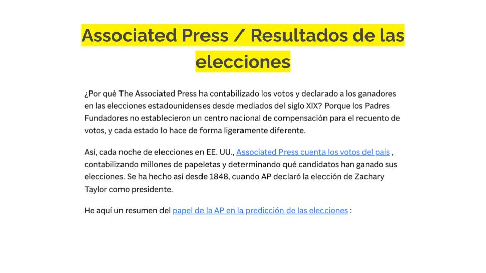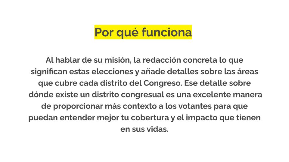 1. En tu cobertura diaria, en cualquier lugar donde compartas noticias electorales. Eso significa incluir el lenguaje explicativo y los enlaces en recuadros y notas del editor, así como también en boletines informativos y transmisiones. No pases por alto la idea de un simple paréntesis dentro de una historia para ofrecer un contexto como este.