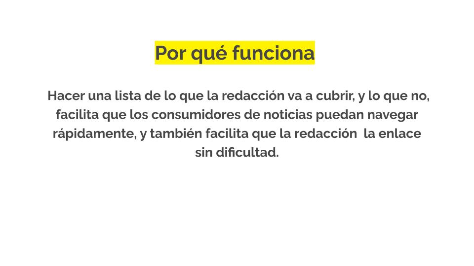 En colaboración con otras redacciones, hemos aprendido que, si los periodistas son más conscientes de las palabras que eligen y del marco de las historias, los periodistas pueden evitar enviar señales involuntarias sobre sus propias opiniones y sobre los valores que reflejan los contenidos.