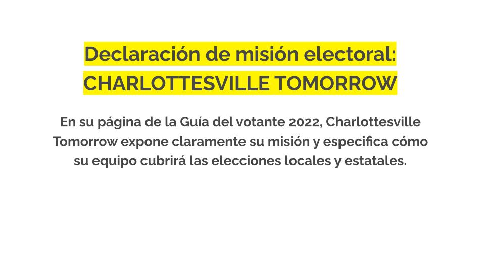 Probablemente tengas una declaración de misión para tu redacción. (Si no, Ωenemos consejos para crear una y hacerla pública.) Las declaraciones de misión organizativa reflejan los valores de una organización periodística. Deben ir más allá de “responsabilizar a los poderosos” o “descubrir la verdad” e incluir detalles sobre cómo se seleccionan las noticias que se cubren y en qué se invierten los recursos. Una declaración de misión para tu cobertura electoral es similar, pero en lugar de abordar toda tu cobertura, se centra solo en la cobertura electoral