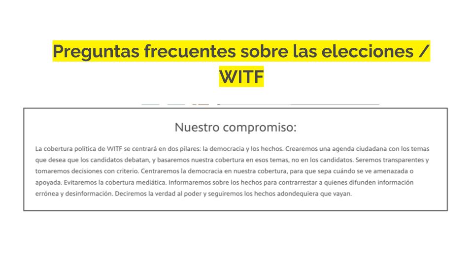 2. Tu quién: ¿Quiénes son los periodistas que cubren las elecciones? ¿Cuál es su experiencia para dar credibilidad a la información? ¿Cómo puede la gente ponerse en contacto con ellos?