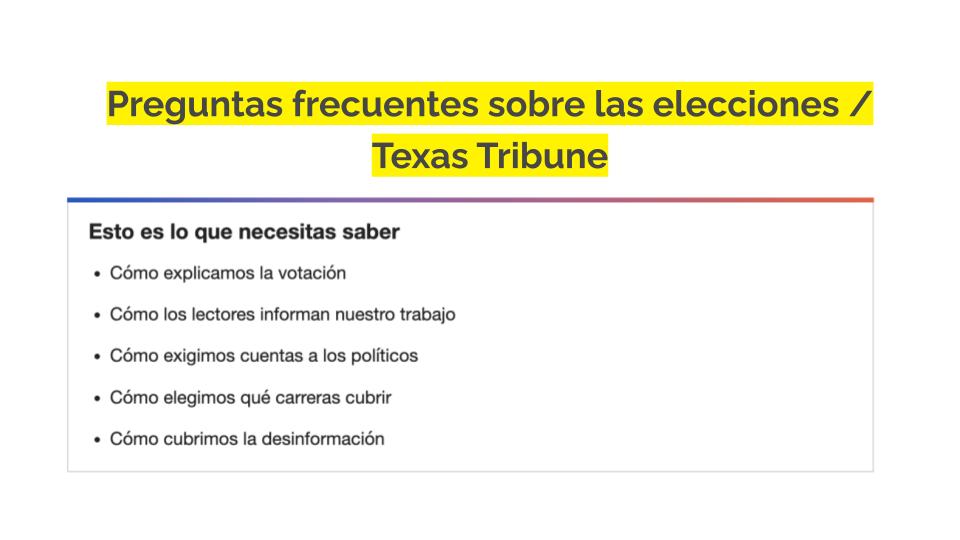 He aquí ejemplos de cómo las redacciones han generado confianza con su cobertura electoral. Para ver más ejemplos de redacciones, consulta nuestra base de datos de ejemplos de redacciones.