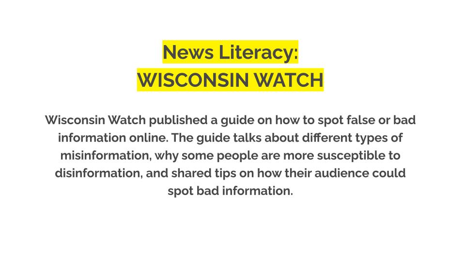 If people aren’t able to tell what’s quality news, or spot when there are bunk sources, it can lead to all sorts of issues like misinformation spreading and a lack of informed civic engagement. It can also lead to problems for us as journalists. If people can’t tell what constitutes good news, why would they turn to us as a trusted source over other avenues of information? Will they know what sets our news apart from other information? Will they see the value we provide and want to support us? Unfortunately the answer is probably not.