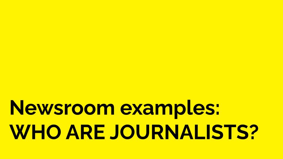 - Information about the journalists’ role in the newsroom. Explain what they do without using industry jargon or insider newsroom language.