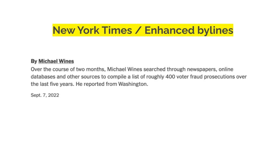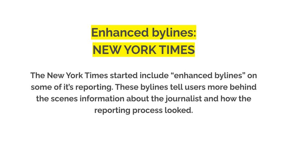 Most newsrooms have journalists write a staff bio. That’s good, because being able to identify who a reporter is, their expertise and experience can lead to credibility which helps build trust.