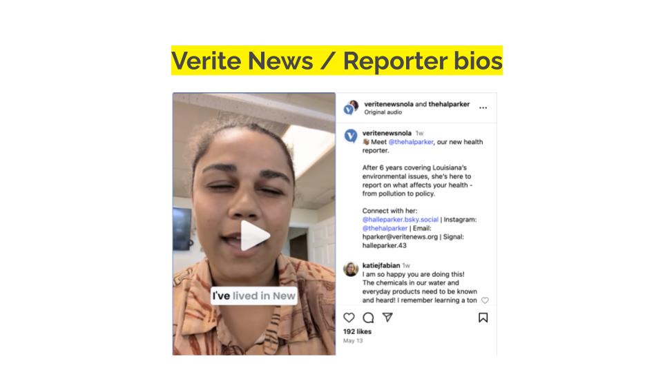 Once you’ve decided what you think would be effective to share about you and your reporting, think through how to best share this information with your audience. You can do this through a staff bio or on an about page, or share on social media or in-person events.