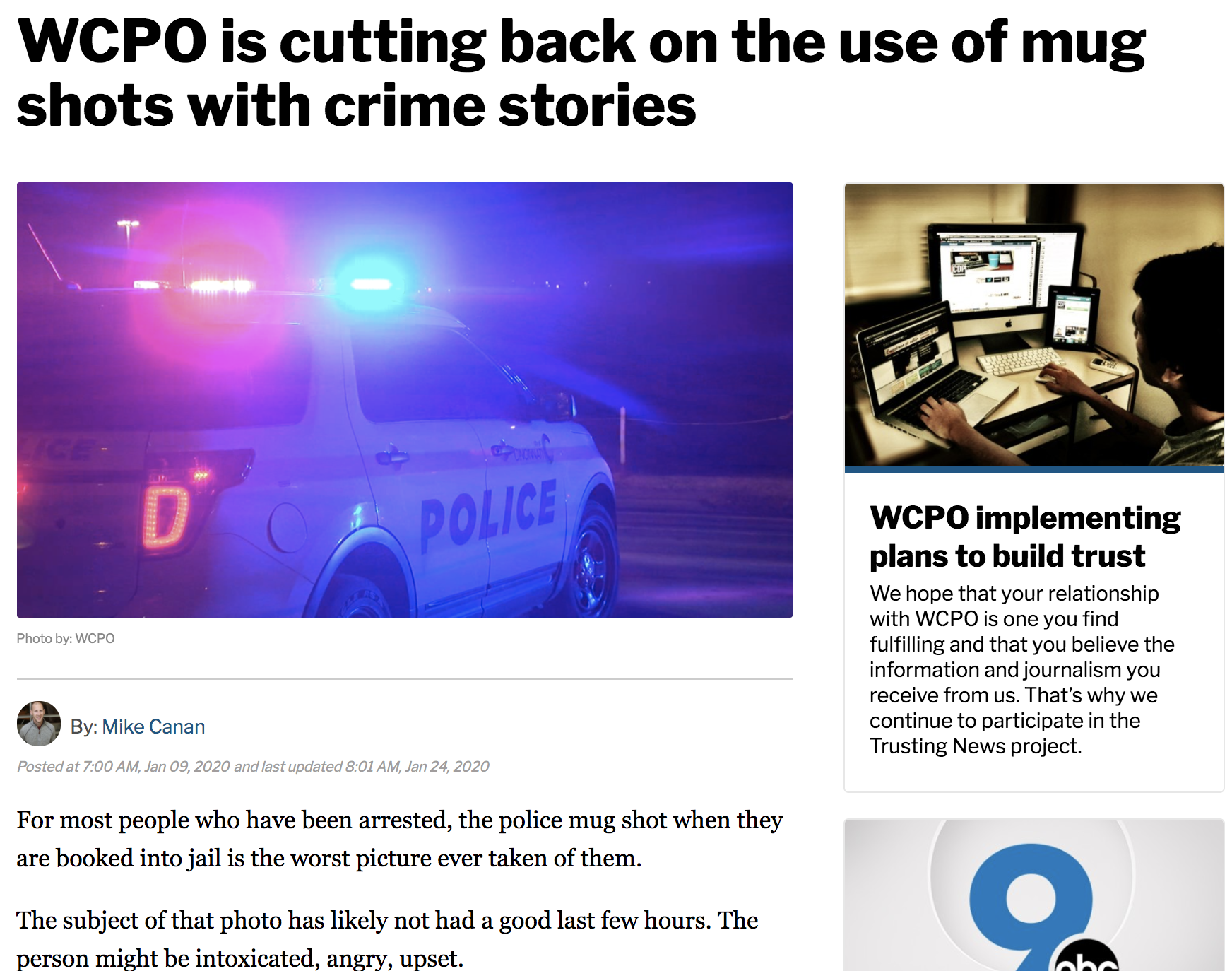 WCPO decided their newsroom would severely limit the number of crime mugshots it used on its website. Director Mike Canan wrote a column explaining the change, specifically addressing how mugshots often disproportionately represented people of color and people with mental health issues while rarely added to the value of the actual reporting. The station also explicitly listed its new protocol for how it would use mugshots, inviting its audience to hold them accountable to their own standards. “We think it is ethical and responsible without harming our commitment to accurate journalism,” Canan wrote.