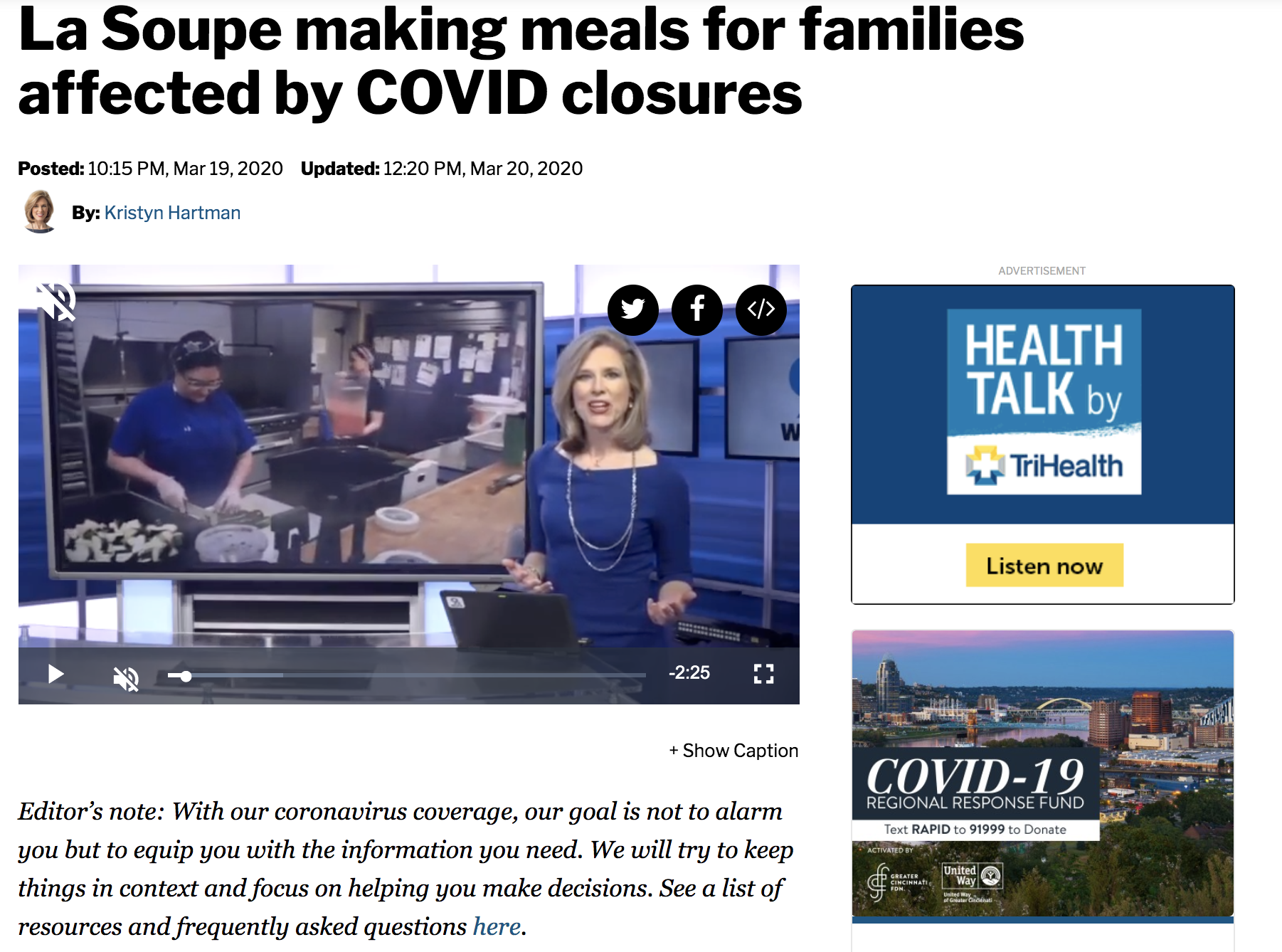 WCPO in Cinncinati shared part of their reporting process with their audience by adding a line in their on-air coverage about how they were using video shot by the restaurant because they could not go inside due to COVID-19. “We can’t bring you this story the traditional way we would,” the anchor said. “La Soupe has asked us to stay out of their kitchen for obvious reasons, but they did offer to shoot video of food prep themselves, and that’s what you’ll be seeing in this story.” The explanation flowed well with the story and did not disrupt the storytelling.