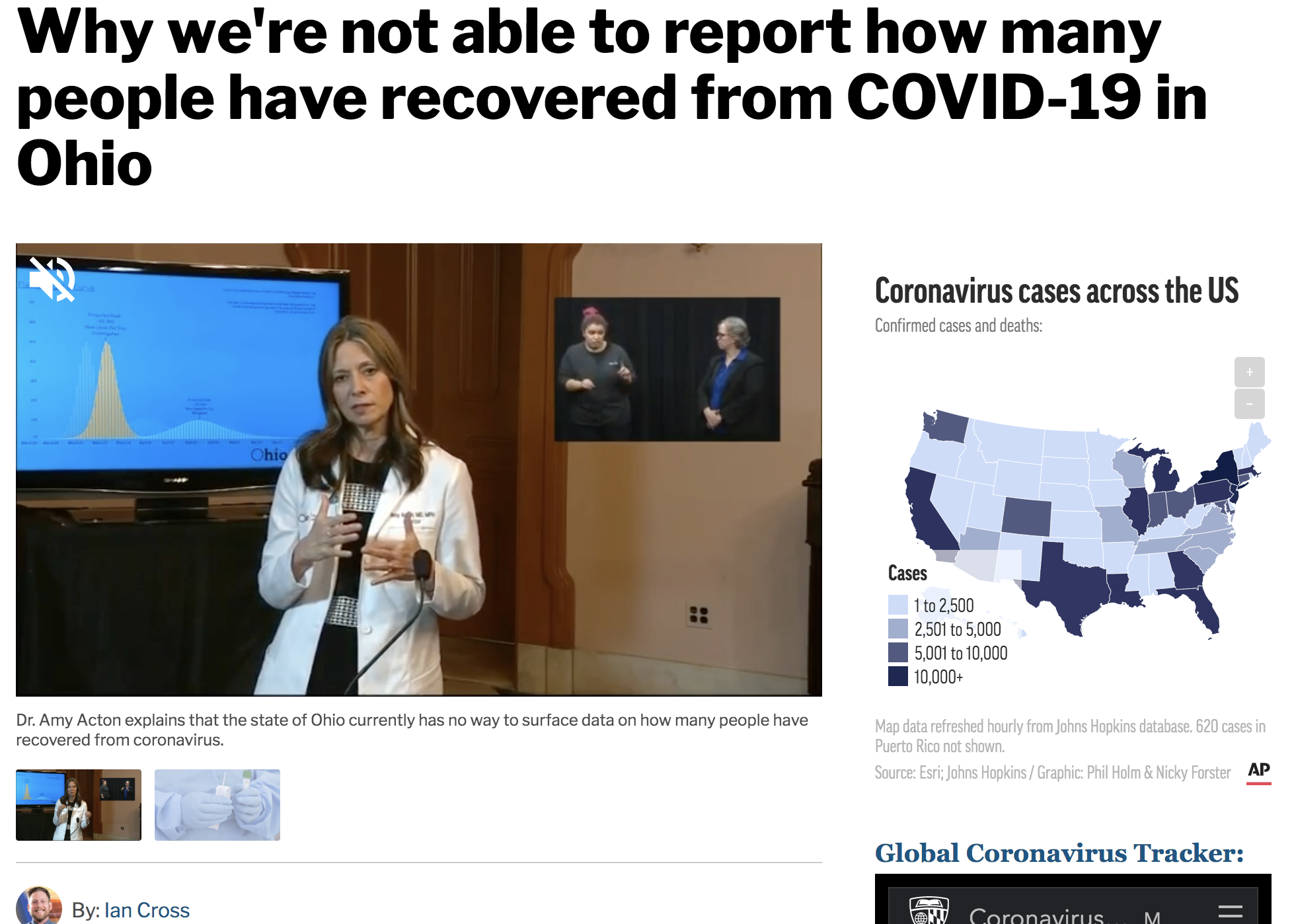 After getting questions and complaints from readers, WEWS used clear language to explain to viewers why the numbers of people who recover from COVID-19 aren’t shared alongside the death counts in Ohio. Digital producer Ian Cross wrote a column to explain: “So to answer the question: There is no conspiracy by the media to suppress good news about the coronavirus, as some have suggested. It’s a simple matter of available data.” This work was done independently from Trusting News but embodies the workwe do.