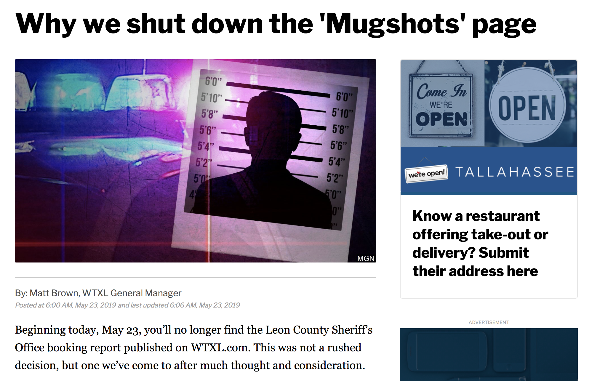 WTXL decided to stop publishing mugshots in the majority of its crime stories. The station’s general manager Matt Brown wrote in a column explaining that the decision was out of a commitment to “tell stories that go beyond the irrelevant and isolated stories on the crime beat, and instead focus on stories that give you a true sense of your community through context, perspective and impact. We will still cover significant and impactful crimes in your community. We will still publish stories with mugshots of persons wanted or arrested for noteworthy or impactful crimes in your community.” Brown ended the column by stating he hoped the change would be a positive one for the community and offered a place for users to offer their feedback about the decision. This work was done independently from Trusting News but embodies the work we do.